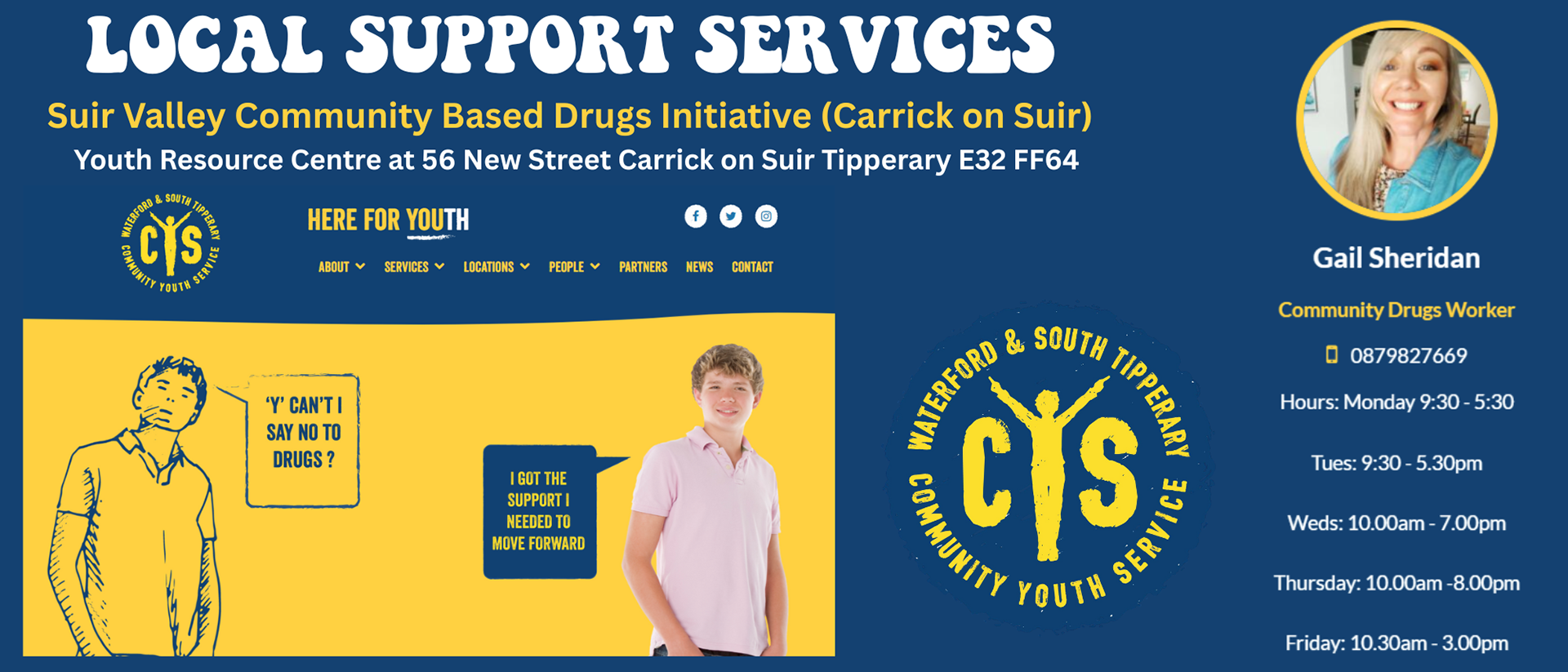 There is a Family support group clinic every Thursday from 6.30pm -8pm as part of the Suir Valley Community Based Drug Initiative @ 56 New Street, Carrick on Suir. Contact Gail Sheridan to book a place.